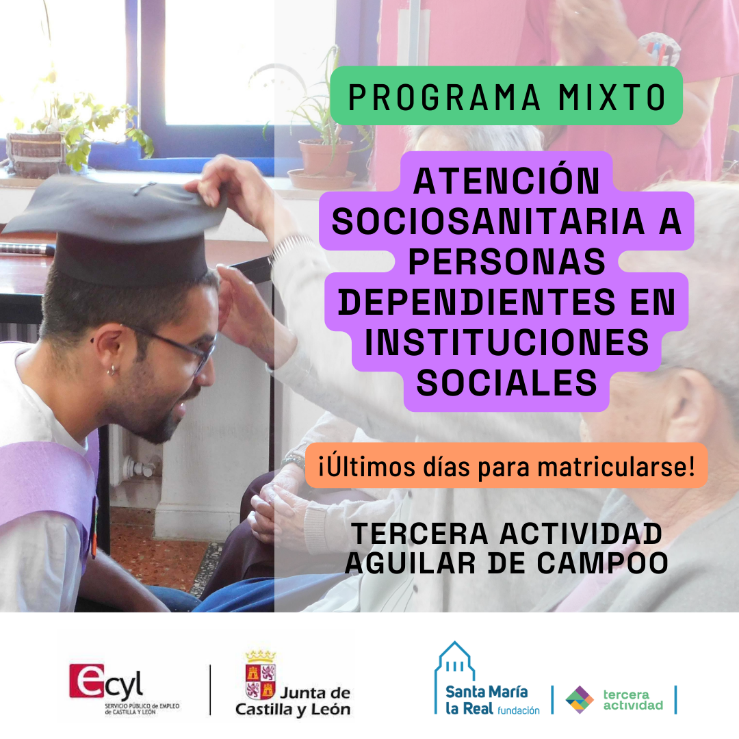 La Fundación Santa María La Real pone en marcha el día 1 de septiembre de 2024 un Programa Mixto de Formación y Empleo en la localidad de Aguilar de Campoo (Palencia) con el fin de que personas desempleadas adquieran la cualificación y competencias correspondientes al Certificado de Profesionalidad de Atención Sociosanitaria a Personas Dependientes en Instituciones Sociales.